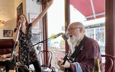 Følges med sin musikalske partner Jan Schønemann, der assisterer med guitar og andenstemme.